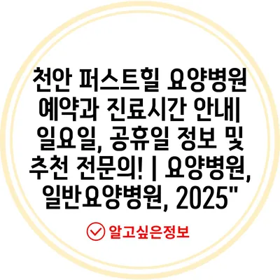 천안 퍼스트힐 요양병원 예약과 진료시간 안내| 일요일, 공휴일 정보 및 추천 전문의! | 요양병원, 일반요양병원, 2025″