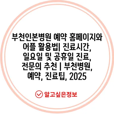 부천인본병원 예약 홈페이지와 어플 활용법| 진료시간, 일요일 및 공휴일 진료, 전문의 추천 | 부천병원, 예약, 진료팁, 2025