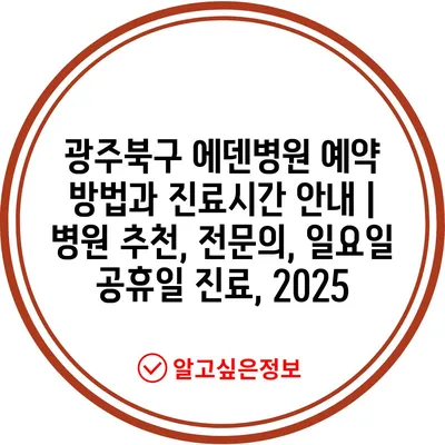 광주북구 에덴병원 예약 방법과 진료시간 안내 | 병원 추천, 전문의, 일요일 공휴일 진료, 2025