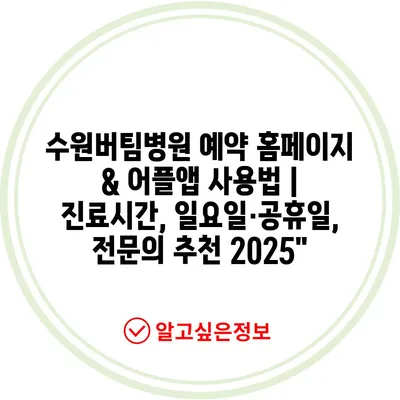 수원버팀병원 예약 홈페이지 & 어플앱 사용법 | 진료시간, 일요일·공휴일, 전문의 추천 2025″