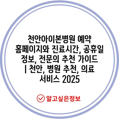 천안아이본병원 예약 홈페이지와 진료시간, 공휴일 정보, 전문의 추천 가이드 | 천안, 병원 추천, 의료 서비스 2025