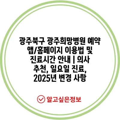 광주북구 광주희망병원 예약 앱/홈페이지 이용법 및 진료시간 안내 | 의사 추천, 일요일 진료, 2025년 변경 사항