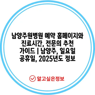 남양주원병원 예약 홈페이지와 진료시간, 전문의 추천 가이드 | 남양주, 일요일 공휴일, 2025년도 정보