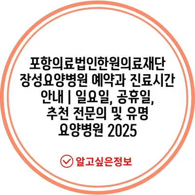 포항의료법인한원의료재단 장성요양병원 예약과 진료시간 안내 | 일요일, 공휴일, 추천 전문의 및 유명 요양병원 2025