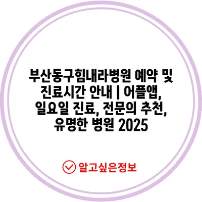 부산동구힘내라병원 예약 및 진료시간 안내 | 어플앱, 일요일 진료, 전문의 추천, 유명한 병원 2025