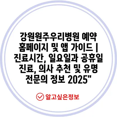 강원원주우리병원 예약 홈페이지 및 앱 가이드 | 진료시간, 일요일과 공휴일 진료, 의사 추천 및 유명 전문의 정보 2025″