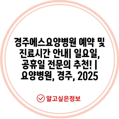 경주에스요양병원 예약 및 진료시간 안내| 일요일, 공휴일 전문의 추천! | 요양병원, 경주, 2025