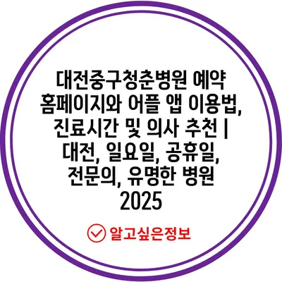대전중구청춘병원 예약 홈페이지와 어플 앱 이용법, 진료시간 및 의사 추천 | 대전, 일요일, 공휴일, 전문의, 유명한 병원 2025