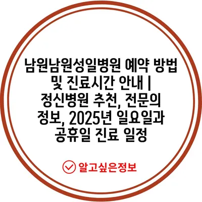 남원남원성일병원 예약 방법 및 진료시간 안내 | 정신병원 추천, 전문의 정보, 2025년 일요일과 공휴일 진료 일정