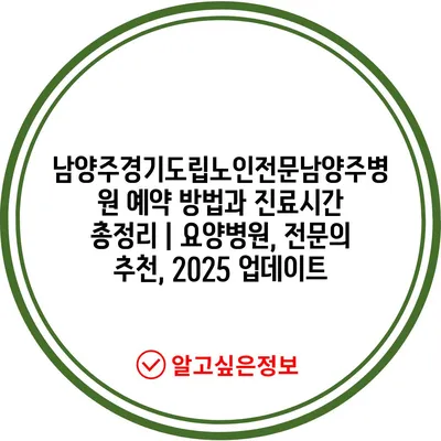 남양주경기도립노인전문남양주병원 예약 방법과 진료시간 총정리 | 요양병원, 전문의 추천, 2025 업데이트