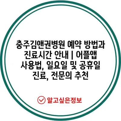 충주김앤권병원 예약 방법과 진료시간 안내 | 어플앱 사용법, 일요일 및 공휴일 진료, 전문의 추천