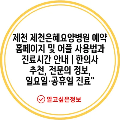 제천 제천은혜요양병원 예약 홈페이지 및 어플 사용법과 진료시간 안내 | 한의사 추천, 전문의 정보, 일요일·공휴일 진료”