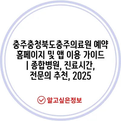 충주충청북도충주의료원 예약 홈페이지 및 앱 이용 가이드 | 종합병원, 진료시간, 전문의 추천, 2025