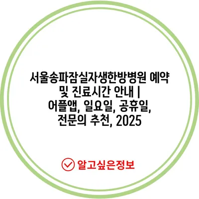 서울송파잠실자생한방병원 예약 및 진료시간 안내 | 어플앱, 일요일, 공휴일, 전문의 추천, 2025