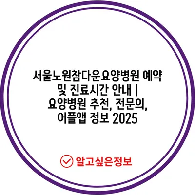 서울노원참다운요양병원 예약 및 진료시간 안내 | 요양병원 추천, 전문의, 어플앱 정보 2025