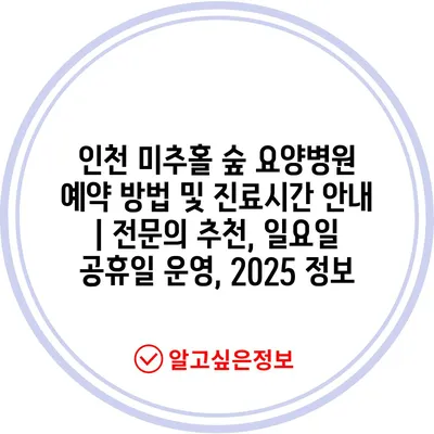 인천 미추홀 숲 요양병원 예약 방법 및 진료시간 안내 | 전문의 추천, 일요일 공휴일 운영, 2025 정보