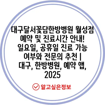 대구달서꽃담한방병원 월성점 예약 및 진료시간 안내! 일요일, 공휴일 진료 가능 여부와 전문의 추천 | 대구, 한방병원, 예약 앱, 2025