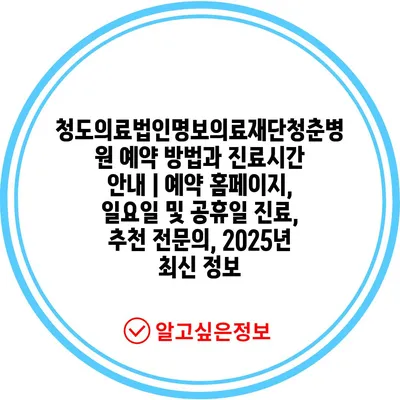 청도의료법인명보의료재단청춘병원 예약 방법과 진료시간 안내 | 예약 홈페이지, 일요일 및 공휴일 진료, 추천 전문의, 2025년 최신 정보