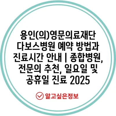 용인(의)영문의료재단 다보스병원 예약 방법과 진료시간 안내 | 종합병원, 전문의 추천, 일요일 및 공휴일 진료 2025
