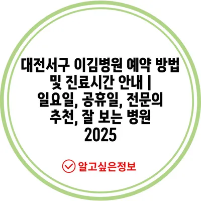 대전서구 이김병원 예약 방법 및 진료시간 안내 | 일요일, 공휴일, 전문의 추천, 잘 보는 병원 2025