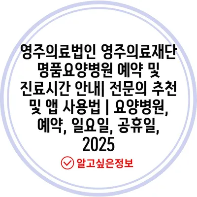 영주의료법인 영주의료재단 명품요양병원 예약 및 진료시간 안내| 전문의 추천 및 앱 사용법 | 요양병원, 예약, 일요일, 공휴일, 2025