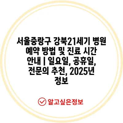 서울중랑구 강북21세기 병원 예약 방법 및 진료 시간 안내 | 일요일, 공휴일, 전문의 추천, 2025년 정보