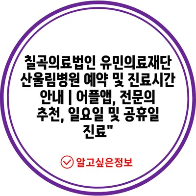 칠곡의료법인 유민의료재단 산울림병원 예약 및 진료시간 안내 | 어플앱, 전문의 추천, 일요일 및 공휴일 진료”