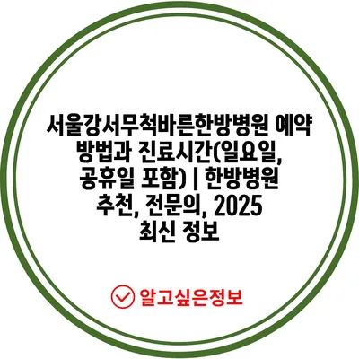 서울강서무척바른한방병원 예약 방법과 진료시간(일요일, 공휴일 포함) | 한방병원 추천, 전문의, 2025 최신 정보