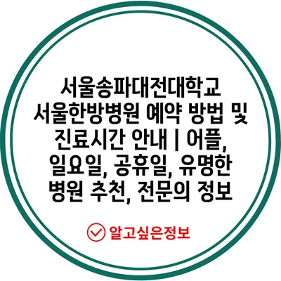서울송파대전대학교 서울한방병원 예약 방법 및 진료시간 안내 | 어플, 일요일, 공휴일, 유명한 병원 추천, 전문의 정보