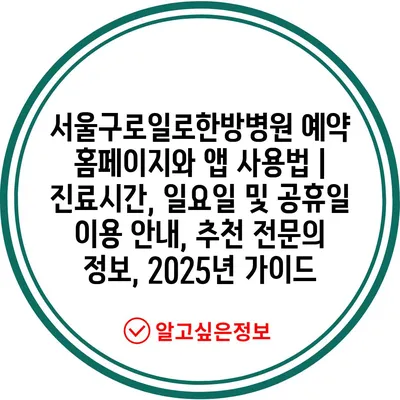 서울구로일로한방병원 예약 홈페이지와 앱 사용법 | 진료시간, 일요일 및 공휴일 이용 안내, 추천 전문의 정보, 2025년 가이드